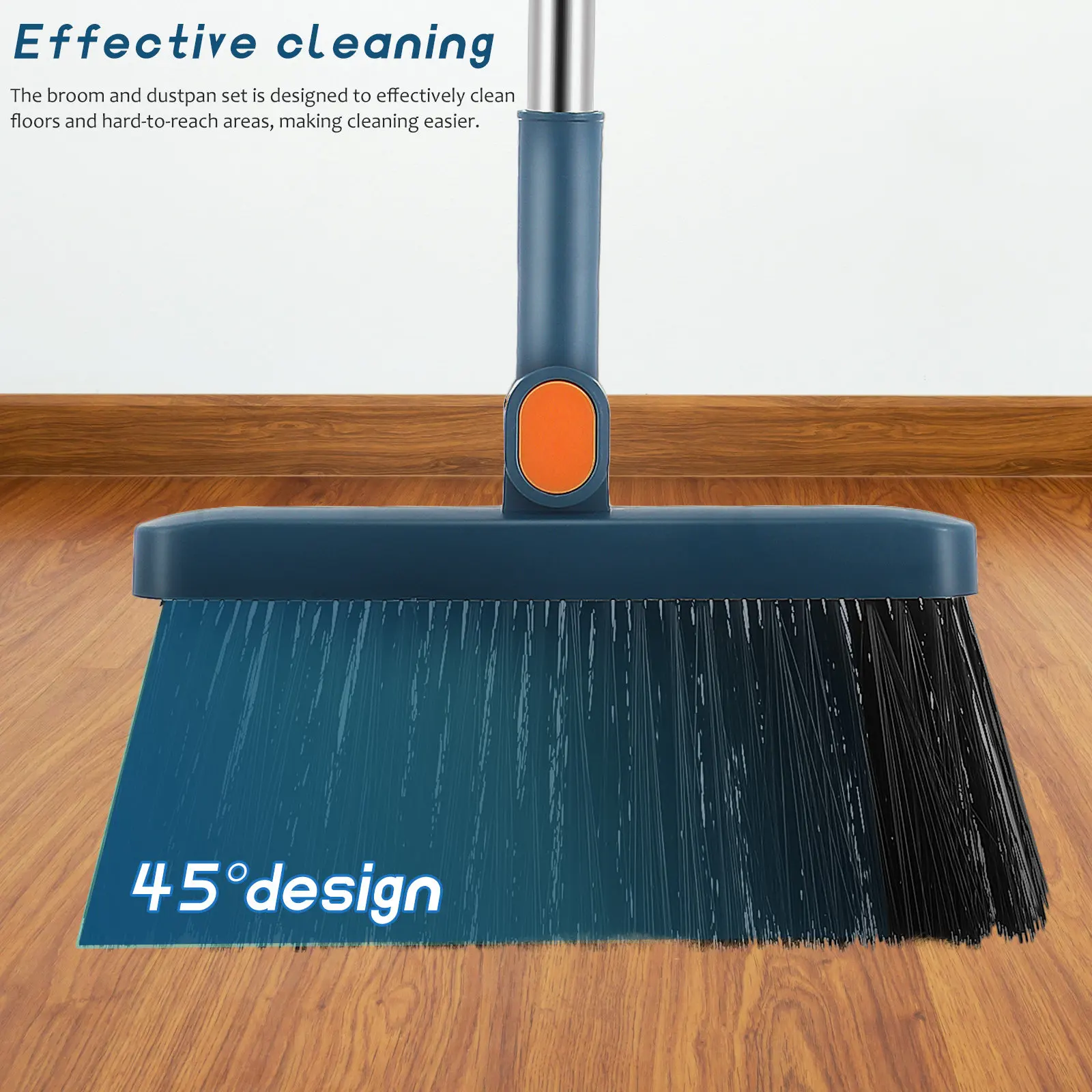 - Rotatable broom: The broom in this set can be rotated, making it convenient to clean hard-to-reach areas and corners. Broom And Standing Dustpan Set